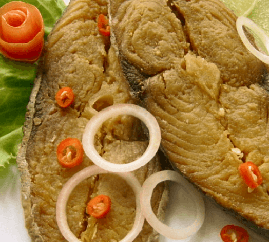 Fried Slice Salted Mackerel Fish in vacuum packing.